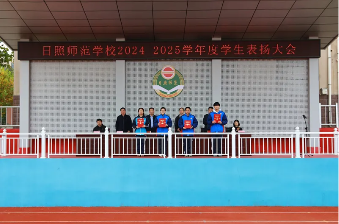 微风轻抚,金叶盈枝。11月11日,日照师范学校在操场隆重召开2024—2025学年度学生表扬大会,表扬过去一学年在学业成绩、技能竞赛、班级建设等方面表现突出的先进集体和个人。学校党委副书记、校长徐宣清,副校长林令华、王义朋和部分处室负责人主席台就座,师生齐聚体育场,共同见证荣耀时刻,凝聚奋进力量。会议由副校长辛本胜主持。