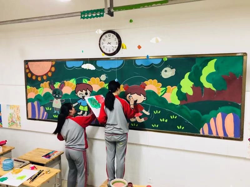 学生们绘制各种主题的黑板报,将班级的精气神、同学们的绘画功底通过精致的黑板报呈现出来,更好地展示了班级风采,也宣传了很多有关节日、安全制度、先进思想等知识。
