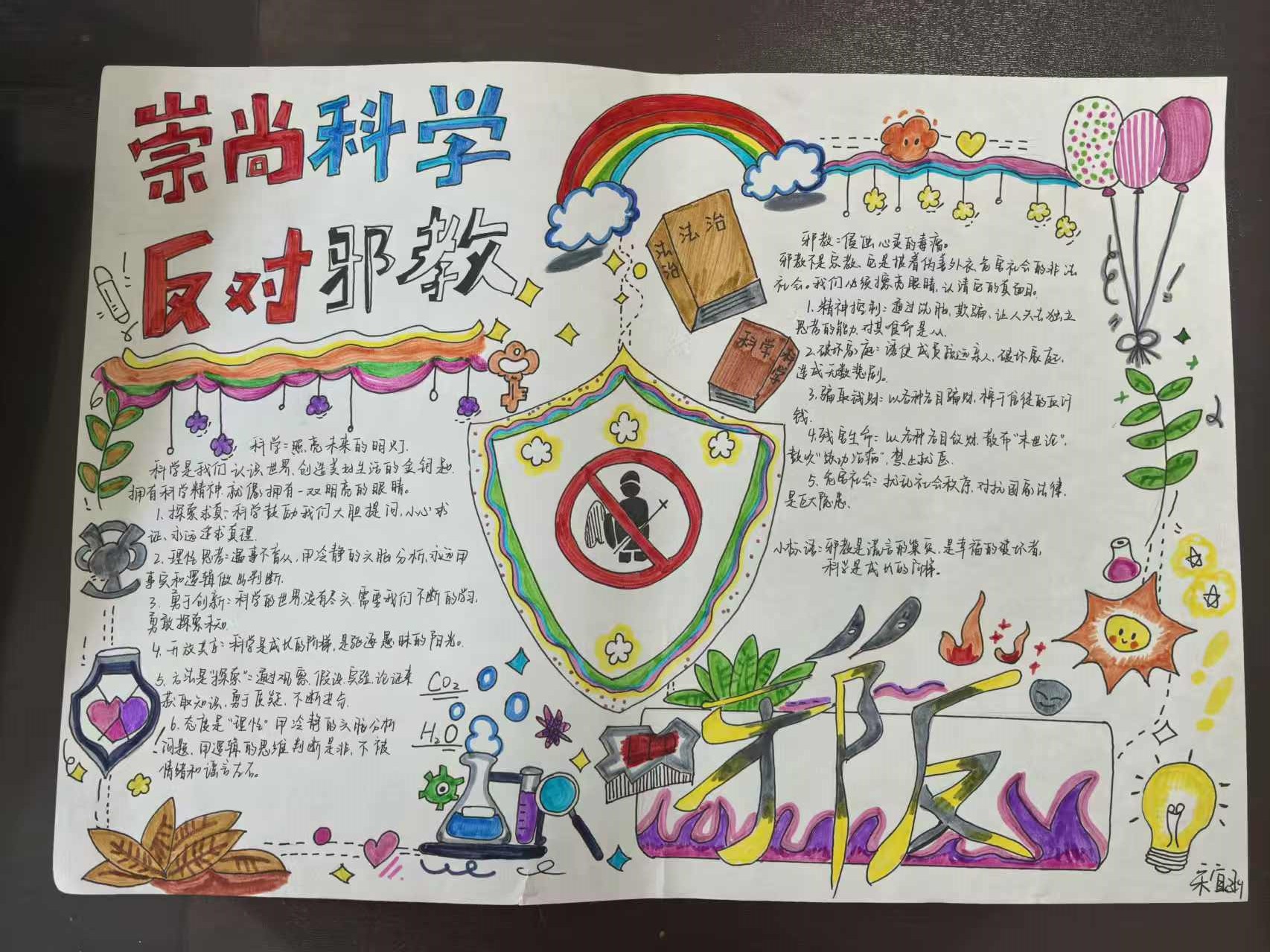 各班级充分发挥学生的创造力与动手能力,精心制作反邪教黑板报与手抄报,成为班级内部反邪教宣传的“小窗口”。让学生进一步加深对反邪教知识的理解,同时也为校园增添了一抹独特的文化色彩,展现出学生积极参与反邪教斗争的决心与热情。