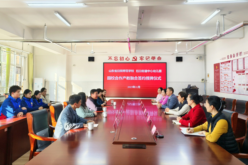 为深入贯彻落实职业教育深化产教融合的决策部署,推动学校幼儿保育专业、婴幼儿托育专业人才培养与行业需求精准对接,11月12日,我校党委委员、副校长王义朋带领教学处和幼儿教育部师生,赴日照市东港区石臼街道中心幼儿园开展职业技能大赛实践性教学,举行园校合作产教融合签约暨实习实训基地授牌仪式。石臼街道中心幼儿园园长、党支部书记王世华带领园所管理团队及骨干教师一起深入交流,双方相关处室负责人共同参加活动。